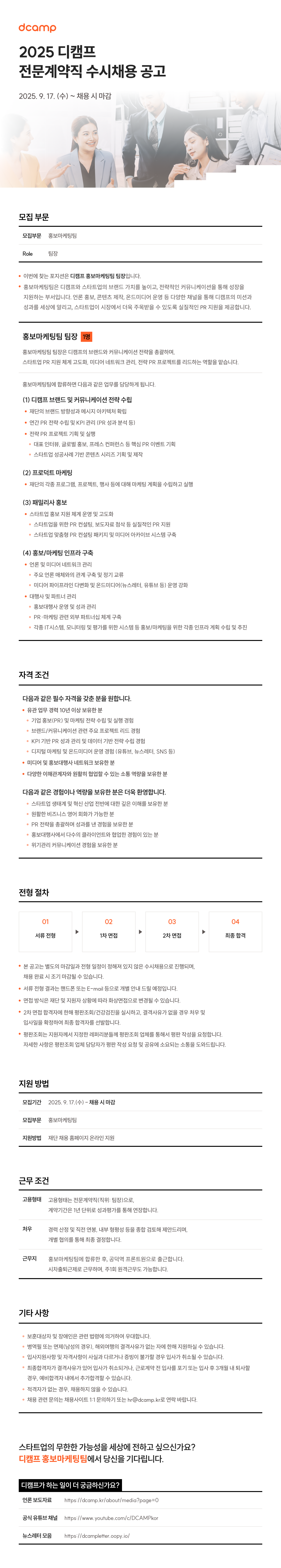 [홍보마케팅팀] 2025년 디캠프 전문계약직 수시채용